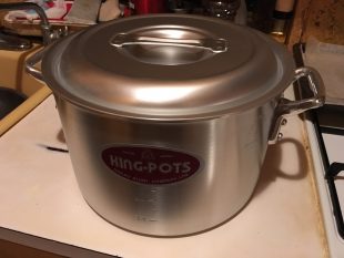 今まで使ってたのは21cmで大体5Lだから、単純に倍作れる訳ね。