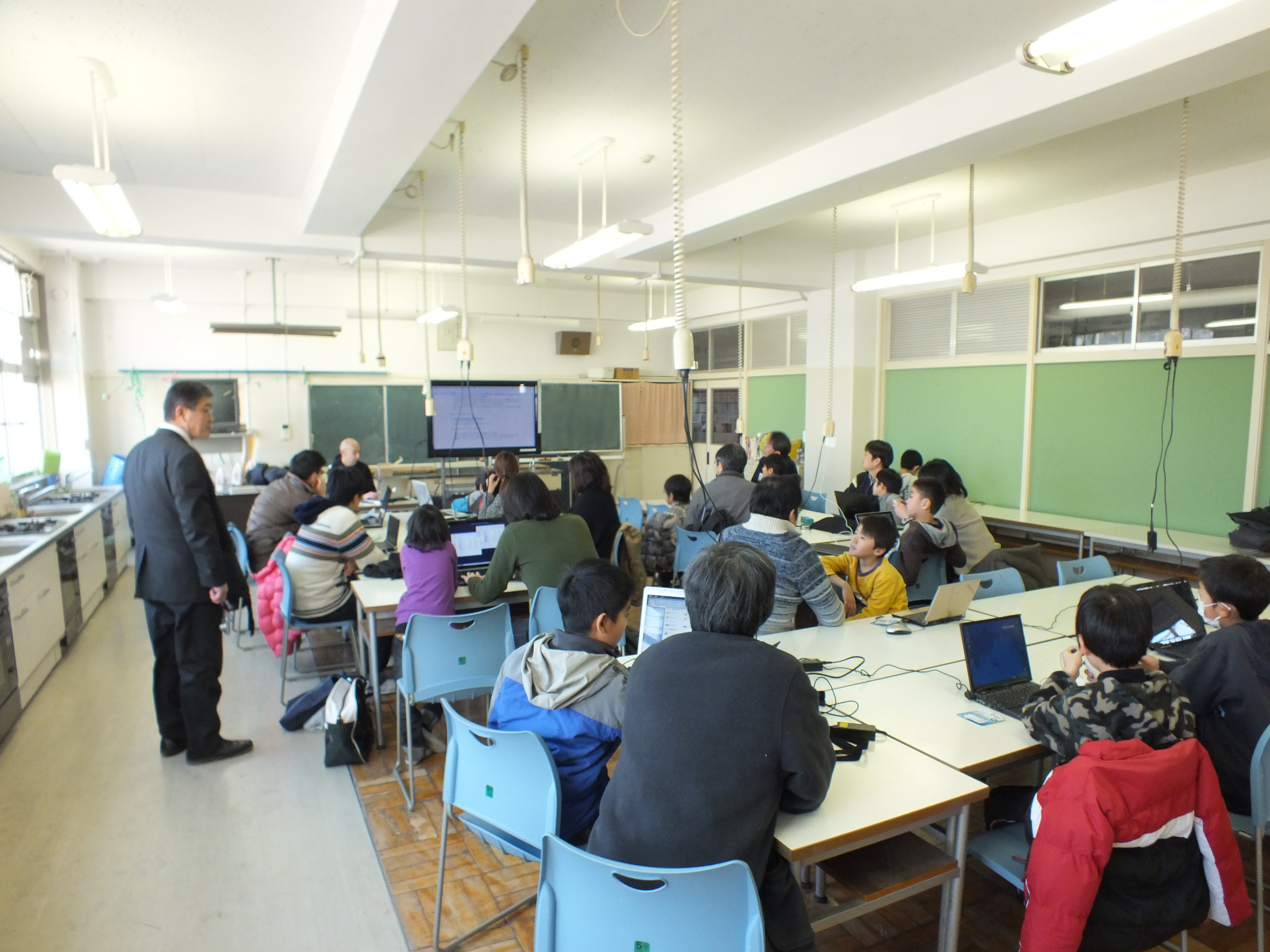 小学校にはパソコン教室があって、常備されているPCがあるので、当初そこでできるんじゃね、と思ったんですけどね、ところがどっこい、ソフトウェアをインストールしちゃイカン、と。